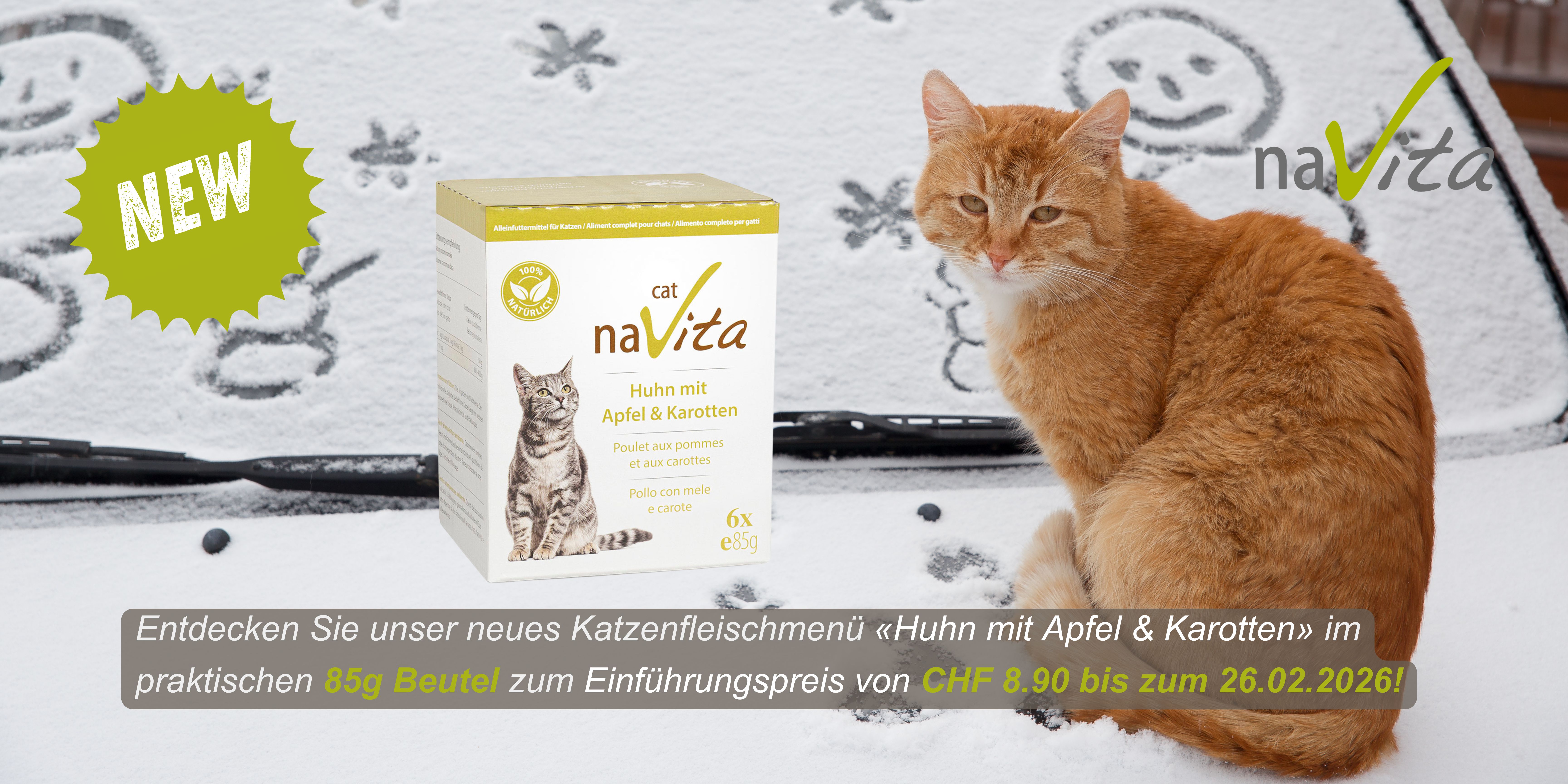 Als Gratisbeilage zum Ausprobieren erhalten Sie bei Bestellung von Artikeln aus der Kategorie Katze im Aktionszeitraum vom 28.03.2023 bis zum 30.06.2023 vier Fischdosen geschenkt.